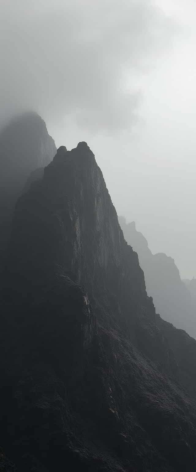 This design presents an abstract depiction of a cityscape, rendered in striking black and grey tones. The silhouette of the city rises sharply against a foggy backdrop, creating a sense of mystery and depth. Intricate geometric lines weave through the buildings, adding complexity and an architectural feel to the composition. Dramatic shadows and a soft glow enhance the atmospheric quality, inviting the viewer to explore the interplay of light and dark within the urban landscape. The overall effect is both modern and evocative, making it suitable for contemporary decor or tech accessories.