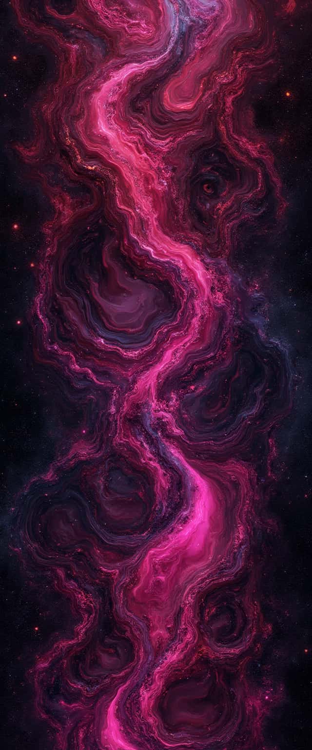 This design features an abstract pattern dominated by oversized rubies in vibrant ruby red, crimson, and violet hues. The colors pulsate dynamically, creating a hypnotic effect that draws the viewer in. Intertwining swirling waves of liquid light complement the bold colors, adding movement and depth to the design. These elements are framed by intricate geometric patterns that mirror cosmic structures, evoking a sense of wonder and exploration. The overall composition suggests a mystical connection to the universe, making it a captivating visual experience.