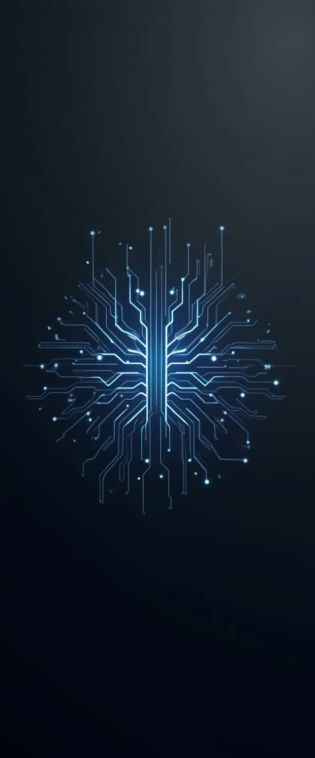 An elegant charcoal gray background sets the stage for a striking central motif: a glowing circuitry resembling a human synapse. The iridescent lines interact with subtle ambient blue lighting, invoking a sense of advanced technology and sophistication, crisply defined in incredible detail.