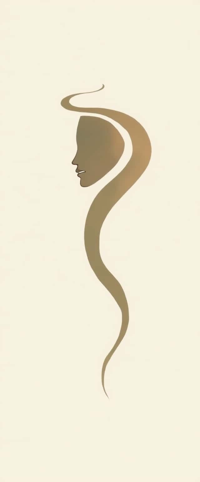 This minimalist portrait features a stylized representation of a woman's face and flowing hair, crafted with smooth, elegant lines. The design employs a muted beige background that complements the simple yet impactful black linework, creating a serene and calming effect. The woman's expression is tranquil, adding warmth to the minimalist aesthetic. Subtle abstract shapes near the corner enhance the composition, offering an artistic touch without overwhelming the simplicity of the portrait. The overall design focuses on beauty through minimalism, making it ideal for various applications, such as interior decor, wallpapers, or lifestyle branding.